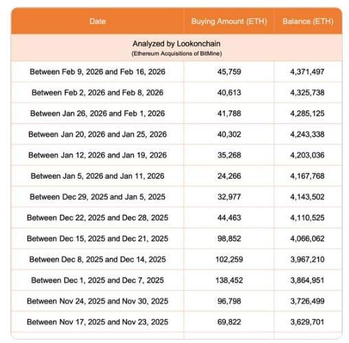 Покупка была совершена всего через несколько часов после того, как BitMine приобрела 15,000 $ETH на $29,57 млн у Falcon X. 18 февраля компания купила ещё 20,000 $ETH за $39,8 млн у BitGo. В общей сложности она потратила $88,86 млн и за 48 часов накопила 45,000 $ETH.