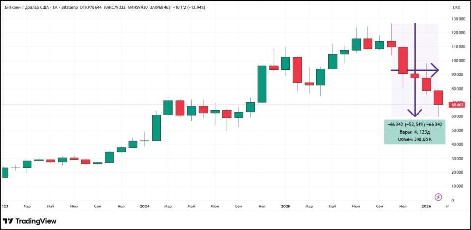 Мнение С момента своего исторического максимума в октябре 2025 года биткоин потерял более $60 000. Этот беспрецедентный обвал породил разговоры о начале криптозимы. Но она ли это на самом деле? И если да, когда закончится? Что будет началом весны? Сейчас объясним.