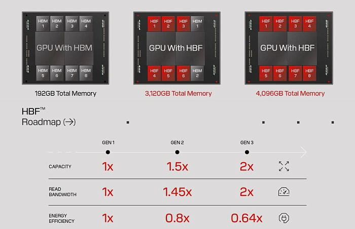 В то время как HBM обеспечивает пропускную способность высокого уровня, технология HBF служит вспомогательным уровнем в архитектуре. В частности, ожидается, что технология HBF снизит общую стоимость владения при одновременном повышении масштабируемости систем искусственного интеллекта».