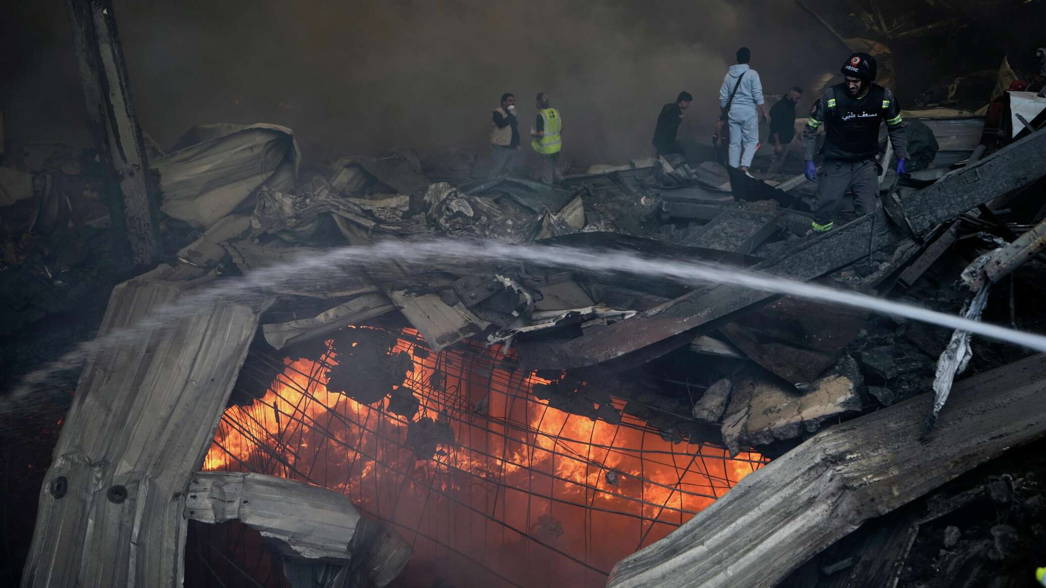 Тушение пожара на месте израильского авиаудара в Бейруте.